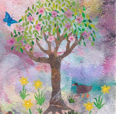 Mixed media collage on paper