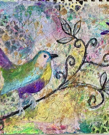 Mixed media collage on canvas panel